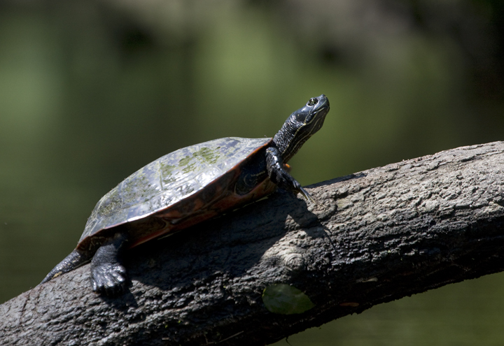 Below: A Red-bellied Turtle sunbathes along Tuckahoe Creek, Maryland (5/17/2008).