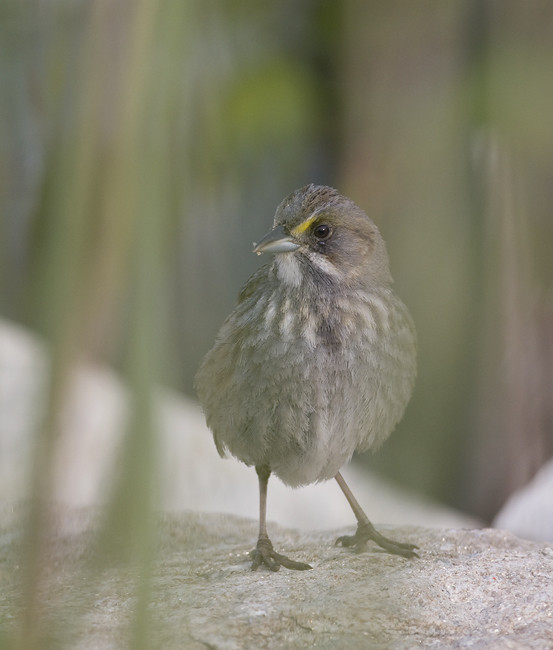 Below: A Seaside Sparrow hides behind thick grasses at Sandy Point SP, Anne Arundel Co., Maryland (5/18/2008). Fortunately it was completely unfamiliar with shallow depth-of-field photography.