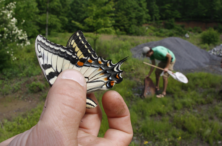 Below: An Appalachian Tiger Swallowtail is carefully studied while Mikey Lutmerding continues the search.