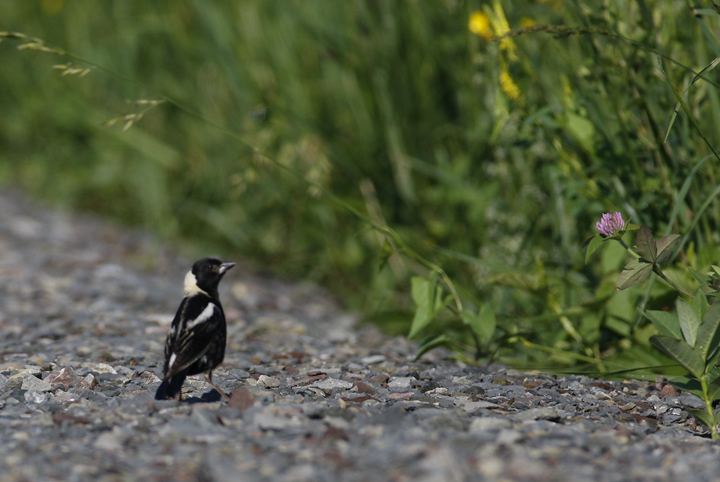 Below: A male Bobolink forages on the roadside in southwestern Garrett Co., Maryland (6/15/2008).