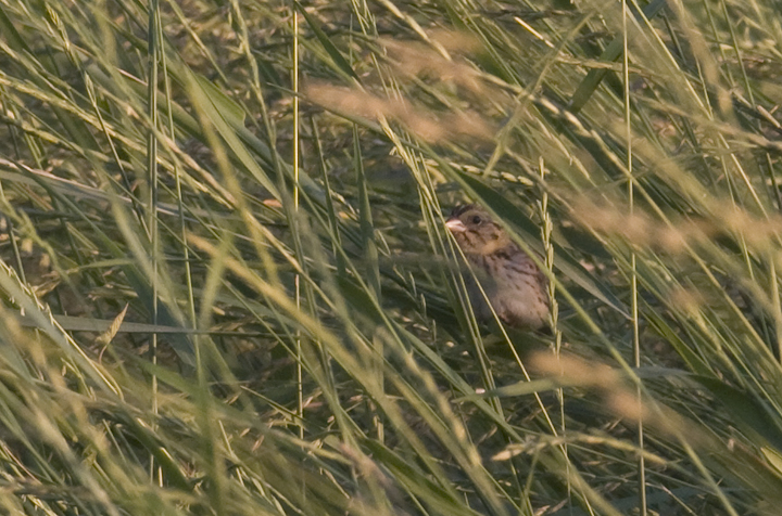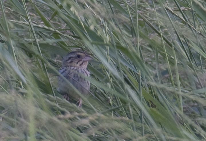 Above and below: Distant documentation photos of a Henslow's Sparrow in Montgomery Co., Maryland (6/15/2008). This is a very rare, out-of-range sighting. Big kudos to Jim Green for finding it and getting the word out. Also, thanks to John Newman and members of the NIH staff for taking steps to ensure the habitat is left intact as this bird attempts to attract a mate.