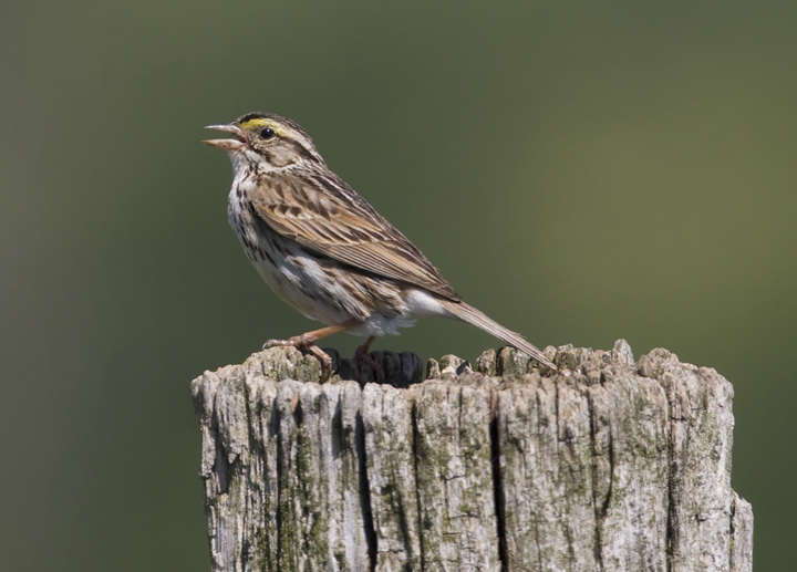 Below: A nesting Savannah Sparrow sings from a fence post in eastern Garrett Co., Maryland (6/15/2008).