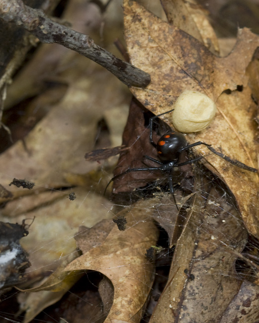 Below: A reminder to be mindful of where you place your hands--a female Black Widow (Southern; Latrodectus mactans) in Anne Arundel Co. (6/29/2008). More on Black Widows