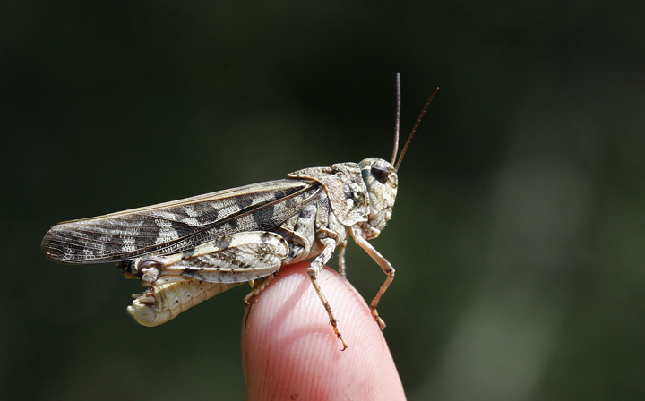 Below: A grasshopper that showed impressive orange flashes in its wings during flight (Anne Arundel Co., Maryland, 6/29/2008).