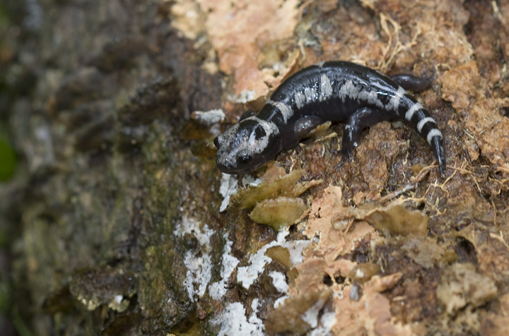 Above and below: Many of Maryland's most interesting herp records come from the western shore coastal plain. Some focused effort here turned up several real gems this weekend. This adult Marbled Salamander was a highlight that I won't soon forget (Anne Arundel Co., Maryland, 6/29/2008).