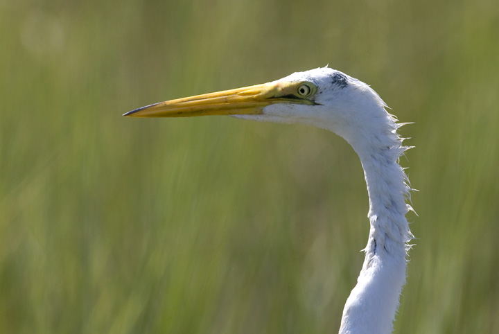 Below: Close-up of a Great Egret after an unsuccessful lunge for a sushi lunch (Somerset Co., Maryland, 7/20/2005).