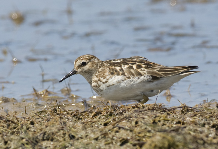 Above: A male Blue Grosbeak sings from a perch above his favorite field in Wicomico Co., Maryland (7/20/2008). Below: A Least Sandpiper in worn breeding plumage at Rumbly Point, Somerset Co., Maryland (7/20/2008). All of the migrant shorebirds I encountered on this date were adults. From talking to Matt Hafner, the first juvenile migrant shorebirds expected in Maryland are Leasts, and the earliest of them arrive in Maryland around the last week in July.