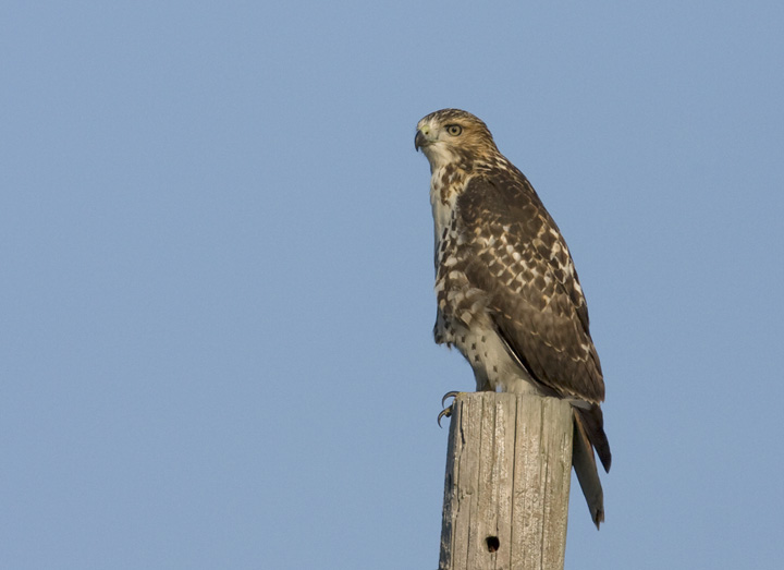 Below: A Red-tailed Hawk perches patiently by the roadside in Somerset Co., Maryland (7/20/2008).