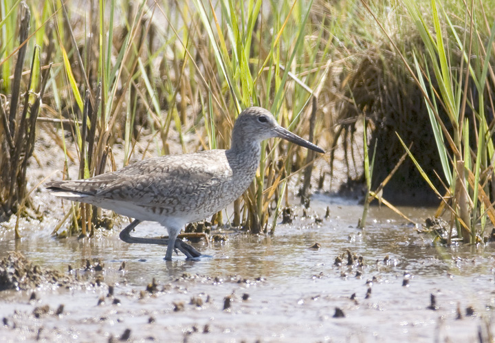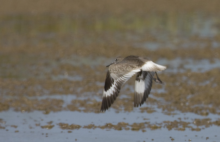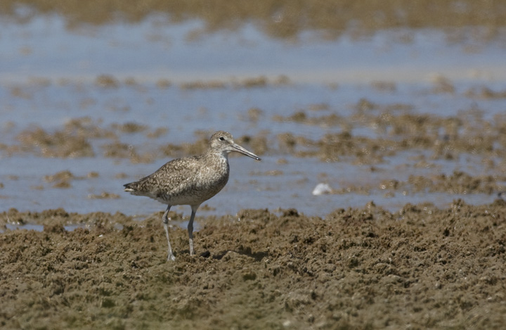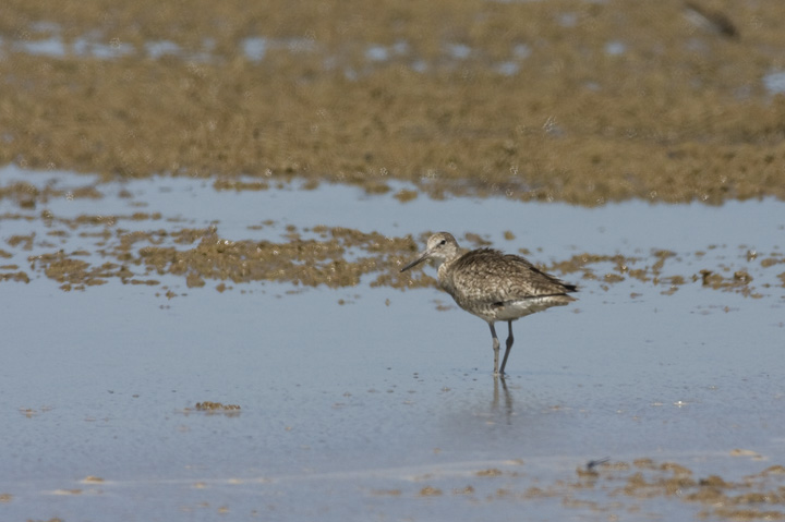 Below four: Eastern Willets foraging around the flats at Rumbly Point, Somerset Co., Maryland (7/20/2008).