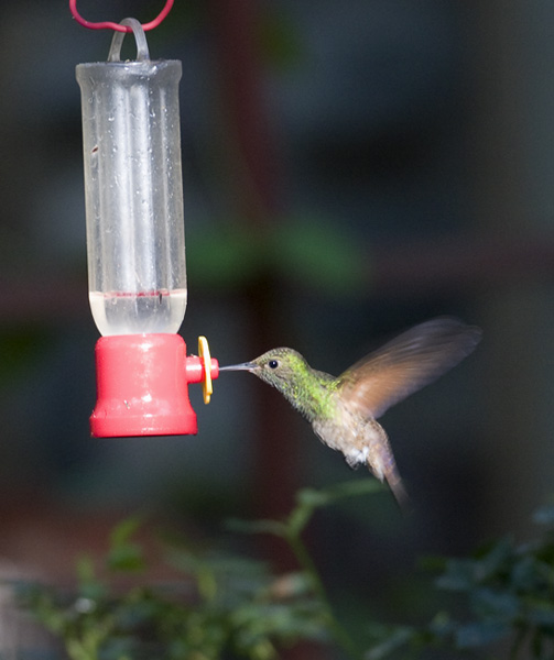 Below: A rare Berylline Hummingbird visits the Madera Kubo feeders in Madera Canyon, Arizona (8/3/2008).