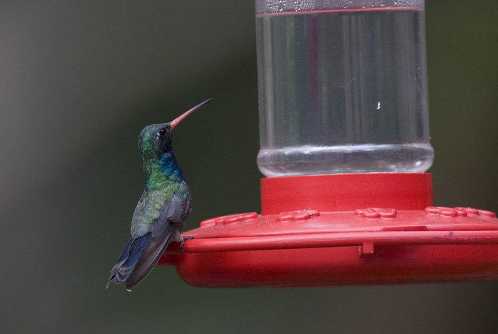 Below: A Broad-billed Hummingbird in Madera Canyon, Arizona (8/2/2008).