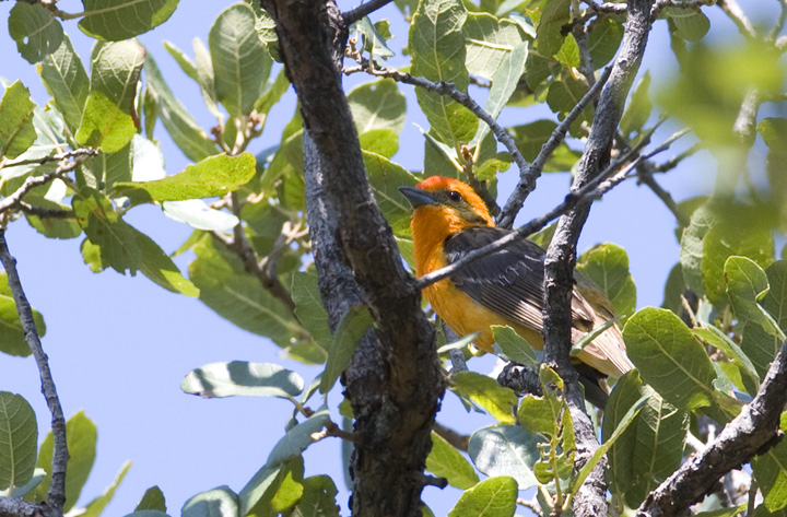 Below: Another high-profile rarity hanging out in Madera Canyon during our visit was this gorgeous Flame-colored Tanager (8/3/2008).