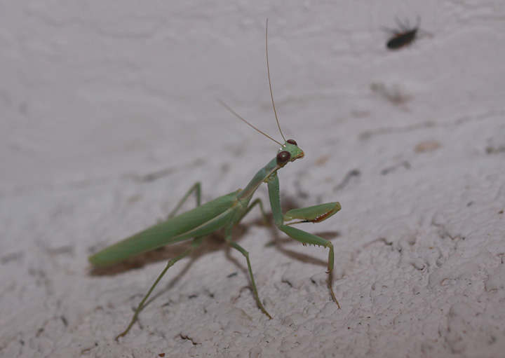 Below: A mantis species hunting under the lights of our hotel in Buckeye, Arizona (8/1/2008).