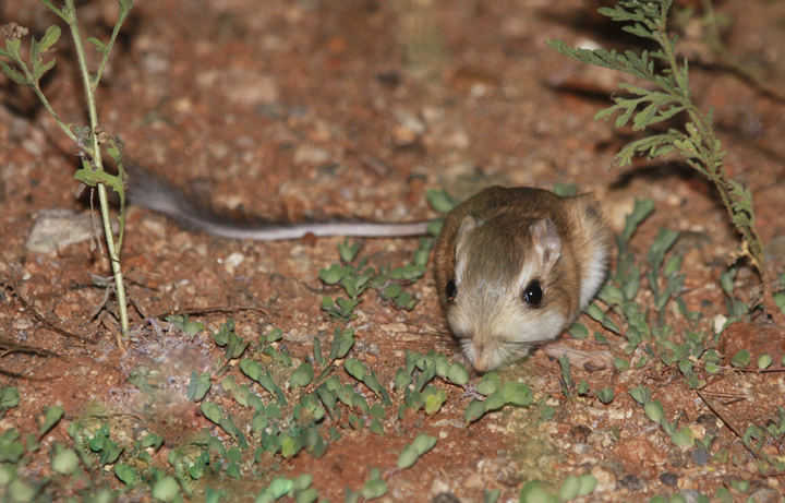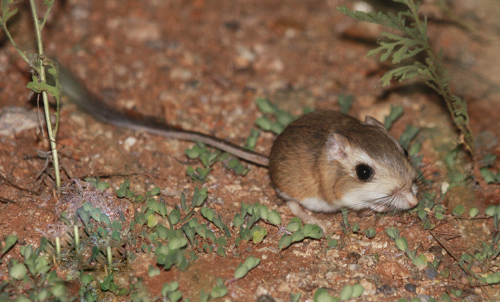 Below two: Patience paid off during our night cruises in getting sharp close-ups of this Ord's Kangaroo Rat. Managing to get good enough looks to ID small mammals is tough! This one is a real beauty. (Near Madera Canyon, Arizona, 8/3/2008).