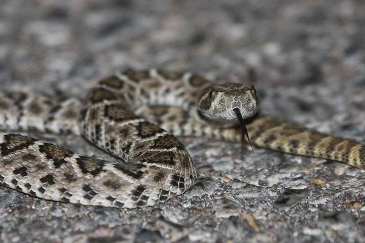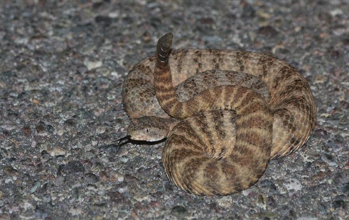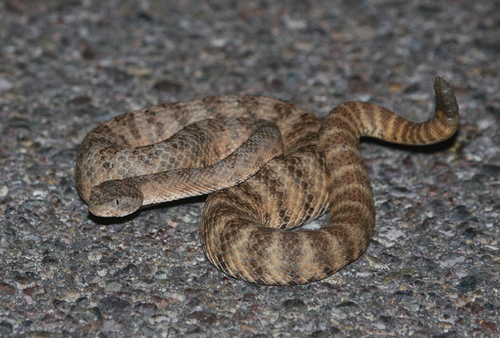Below three: A younger Western Diamond-backed Rattlesnake encountered on a night drive in southern Arizona (8/2/2008).