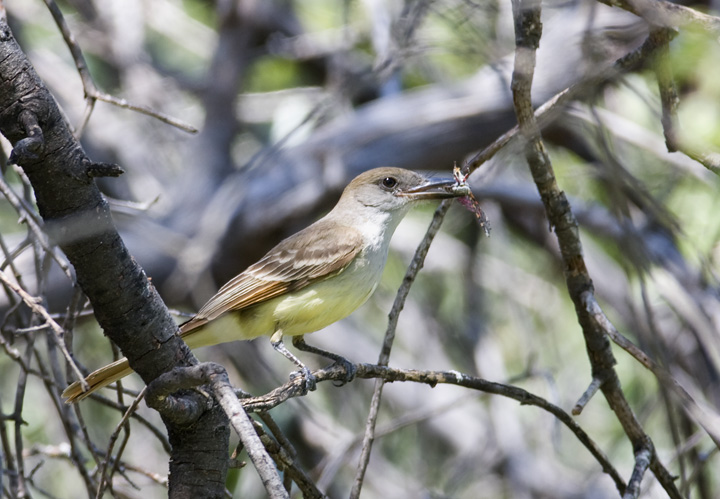 Below: A Brown-crested Flycatcher captures lunch in Madera Canyon, Arizona (8/3/2008).