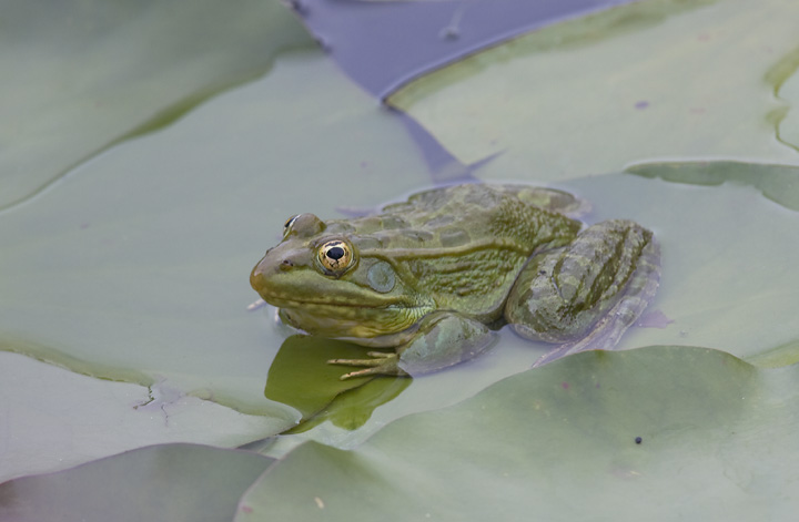 Below: A Ramsey Canyon Leopard Frog lounges on a pond in the Huachucas (8/5/2008).