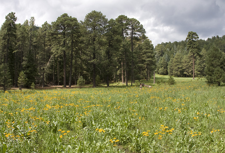 Below: This lovely meadow greets visitors to Rustler Park, high in the Chiricahua Mountains (8/7/2008). The area is home to species such as Red-faced Warbler, Greater Pewee, Red Crossbill, and Mountain Pygmy-Owl.