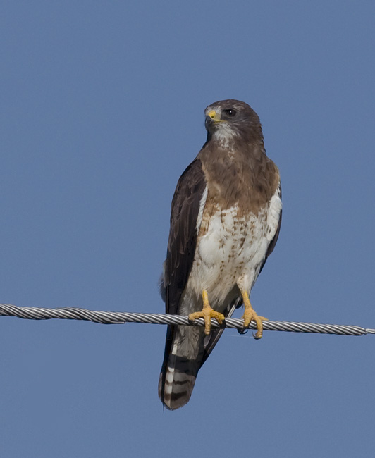 Below: A Swainson's Hawk hunting from a wire in Price Canyon, Arizona (8/6/2008).