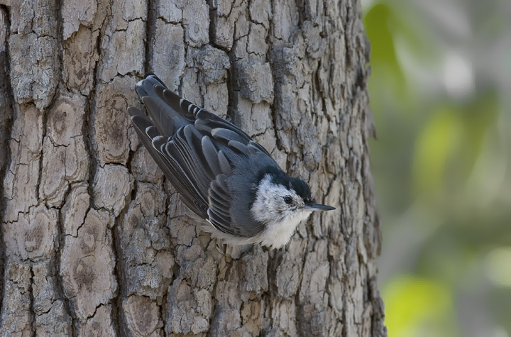 Below: A White-breasted Nuthatch (Interior West subspecies) at a feeder in Portal, Arizona (8/7/2008).
