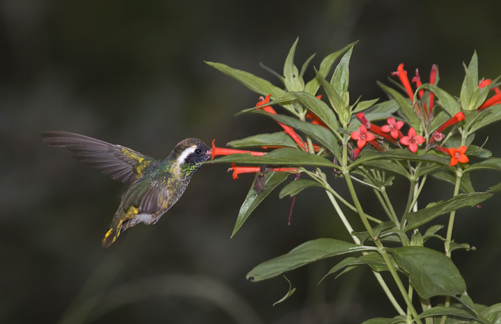 Below: A White-eared Hummingbird feeding in Miller Canyon, Arizona (8/5/2008).