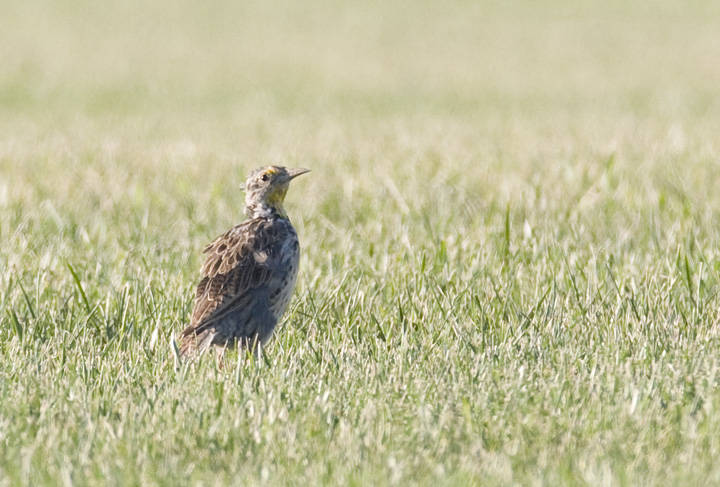 A Western Meadowlark near Hurlock, Dorchester Co., Maryland. Found during an August Big Day by Jim Brighton, Ron Gutberlet, Mikey Lutmerding, and me. Last updated: 8/31/2008.