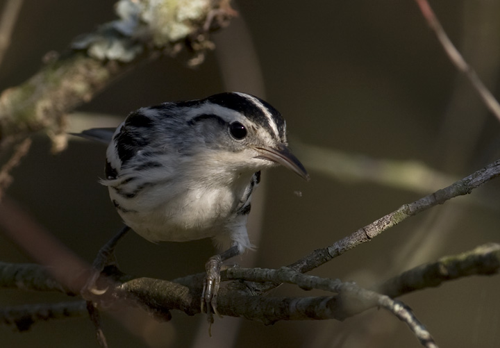 Below: A Black-and-white Warbler forages along a wooded edge in Idyllwild, Caroline Co., Maryland (9/21/2008).
