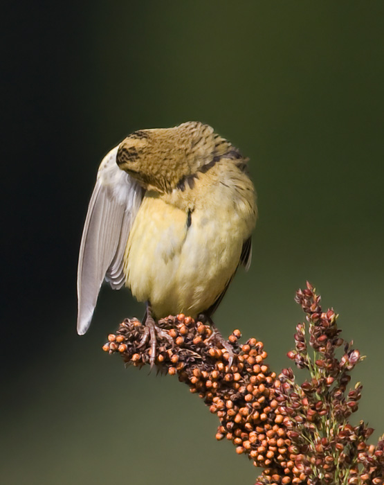 Below three: A Bobolink on Sorghum, practically this species' host plant, in Prince George's Co., Maryland (9/20/2008).