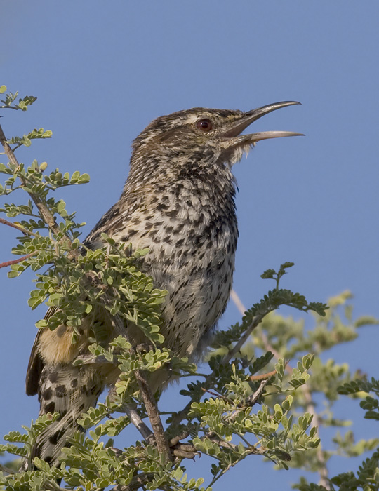 Below: A Cactus Wren proclaims his territory near the town of Portal, Arizona (8/9/2008).