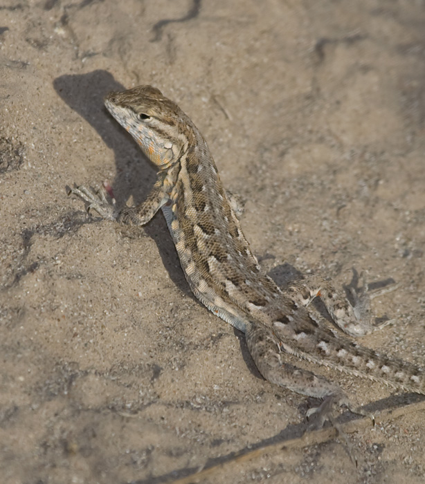 Below: A Greater Earless Lizard poses in the morning sun (central Arizona, 8/10/2008).
