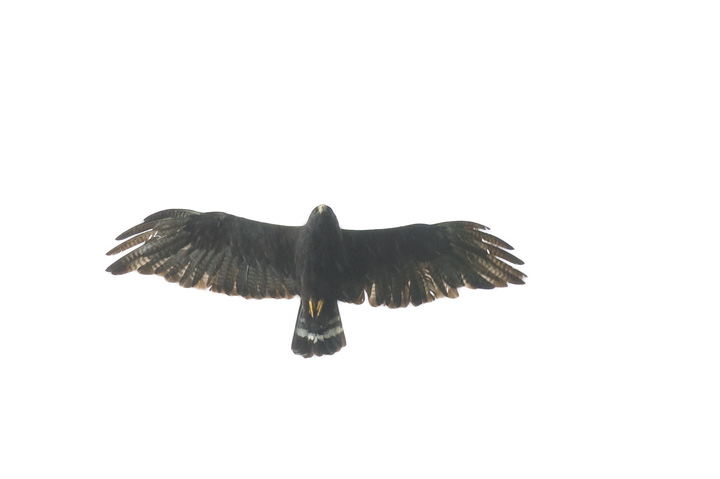 Below: A Zone-tailed Hawk soars over the Chiricahua Mountains, Arizona (8/9/2008).