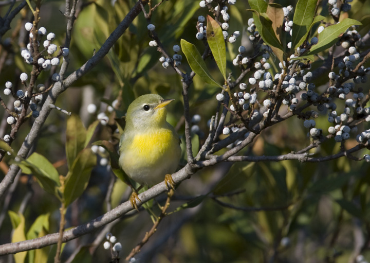 Below: A migrant Northern Parula in a Bayberry bush on Assateague Island, Maryland (10/5/2008).