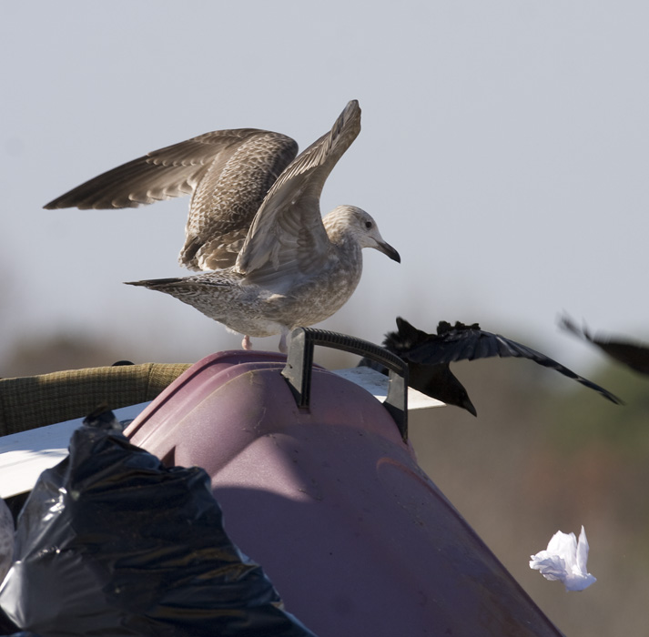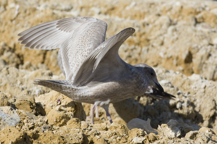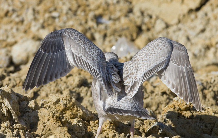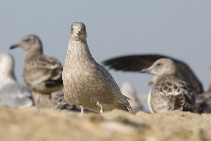 Above and next 18 photos: A first-cycle Thayer's Gull in Salisbury, Wicomico Co., Maryland (11/23/2008). Found by Mikey Lutmerding, this rare gull was one of the most confiding rare birds we've ever encountered. After hiding from me for all these years in Maryland, I thought it was quite kind and appropriate.