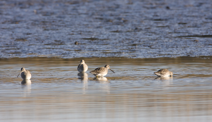 Below two: Four Long-billed Dowitchers near Fairmount, Somerset Co., Maryland (11/23/2008).