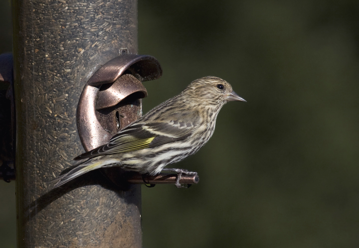 Above and below: Pine Siskins visiting my yard in Pasadena, Maryland (12/25/2008).