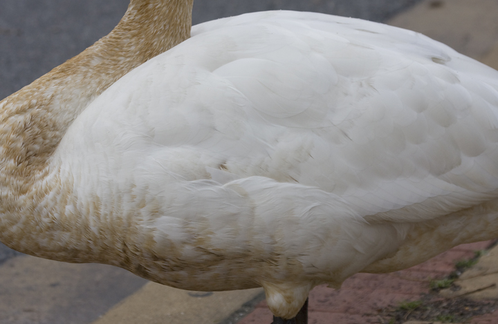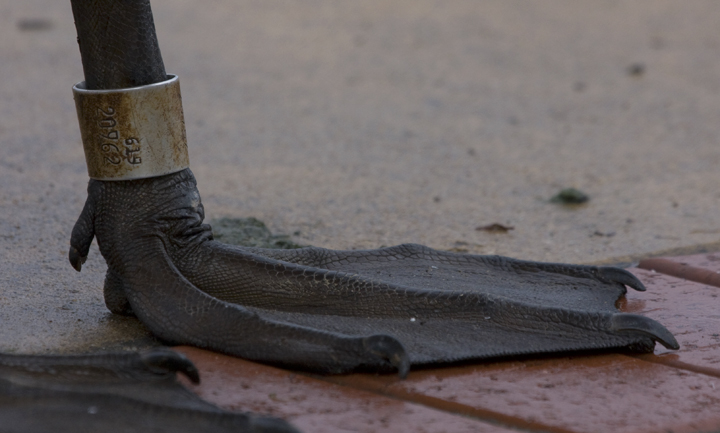 Below five: Trumpeter Swan #962 continuing at Schoolhouse Pond, Upper Marlboro, Maryland (12/21/2008). The bird has shed its wing tags, but wears a ring on its left leg (619 20962).