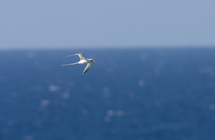Below: One of two White-tailed Tropicbirds soaring along the coast near Quebradillas, Puerto Rico (4/13/2009).