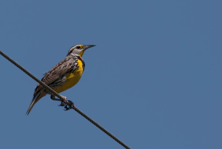 Below: An Eastern Meadowlark sings from the highest vantage point in his domain, Allegany Co., Maryland (6/14/2009).