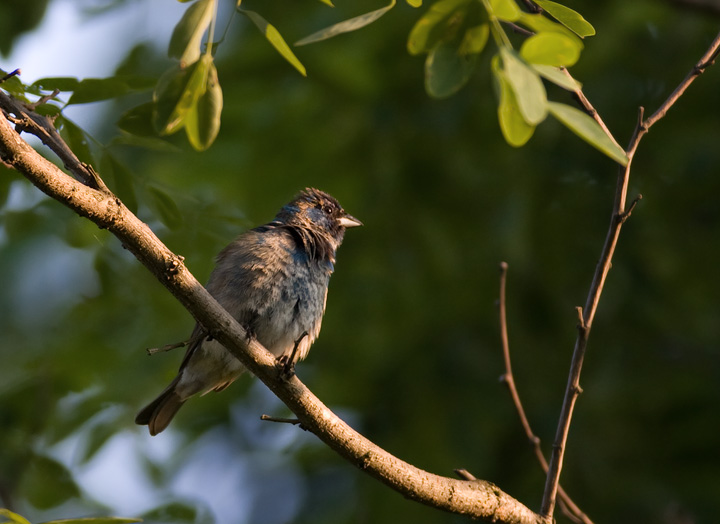 Below: An immature male Indigo Bunting vigorously proclaiming his territory in southern Garrett Co., Maryland (6/12/2009).