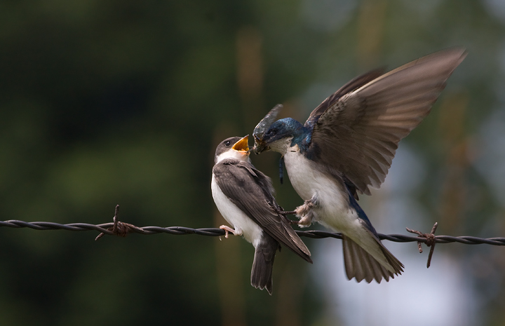 Above: A very recently fledged Red-winged Blackbird. Below: A recently fledged Tree Swallow still gladly accepting hand-outs (i.e., a dragonfly) from its parents. Both photographed at Lake Artemesia, P.G. Co., Maryland (6/20/2009).