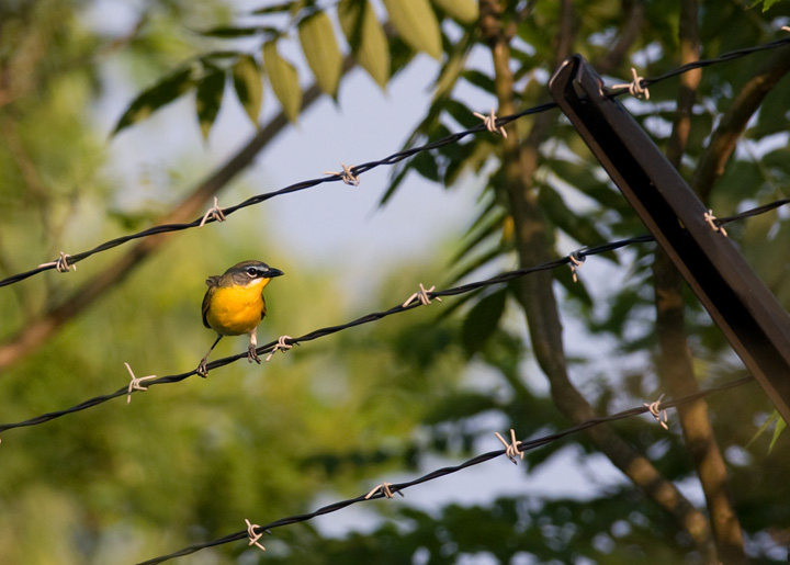 Below: A Yellow-breasted Chat in preferred scrubby habitat near Jennings-Randolph Reservoir, Maryland (6/12/2009).