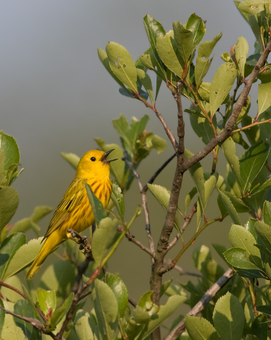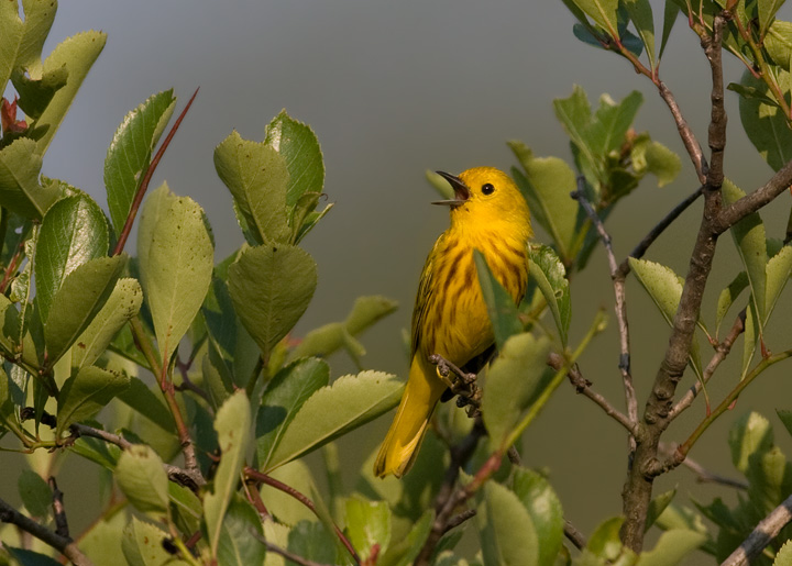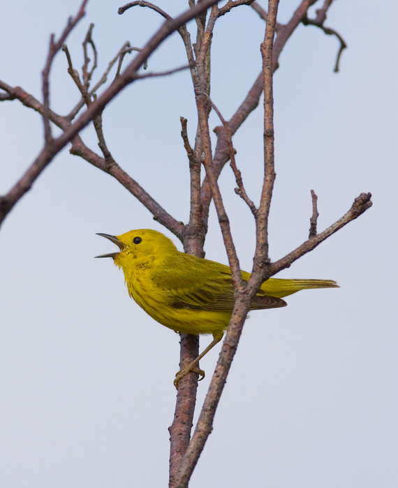 Below five: Yellow Warblers on territory in Garrett and Allegany Counties, Maryland (6/13-14/2009).