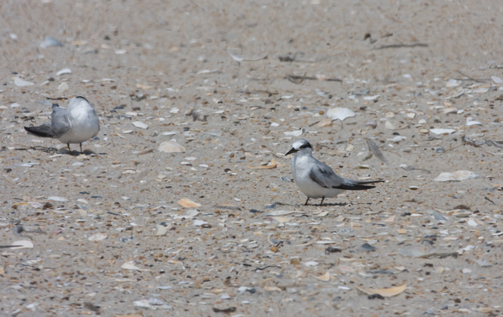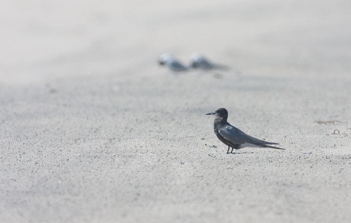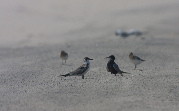 Below: Black Terns - an adult and a juvenile - roosting on Assateague Island, Maryland (8/1/2009).