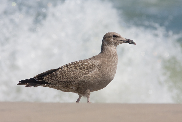 Below: A juvenile Herring Gull hanging out near the surf on Assateague Island, Maryland (8/1/2009).