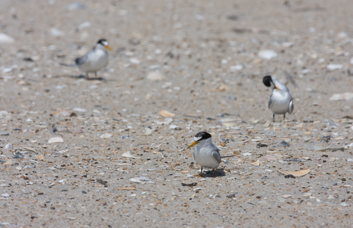 Below: Least Terns roosting on the beach on Assateague Island, Maryland (8/1/2009).