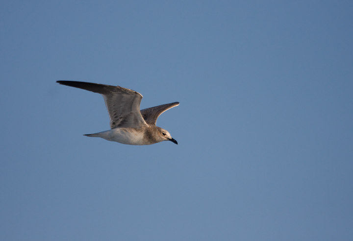 Below: A juvenile Laughing Gull soars behind the boat in coastal Delaware waters (8/16/2009).