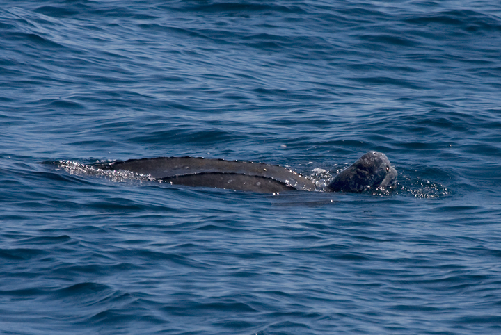 Above and below: One of four Atlantic Leatherback Sea Turtles (Dermochelys coriacea) we observed in Maryland waters near Baltimore Canyon (8/16/2009). This was a dream sighting for many of us. Leatherbacks are the world's largest turtle species--they can grow to 2 meters long and weigh over 2,000 pounds. It is the sole living representative from an ancient lineage dating back 100 million years. Simply awesome.