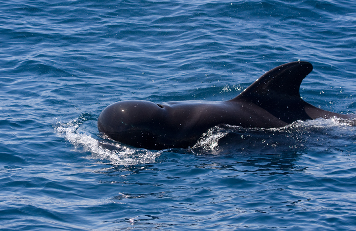 Below: These Common Dolphins escorted their tiny youngsters to inspect our boat and play in the wake (8/16/2009).