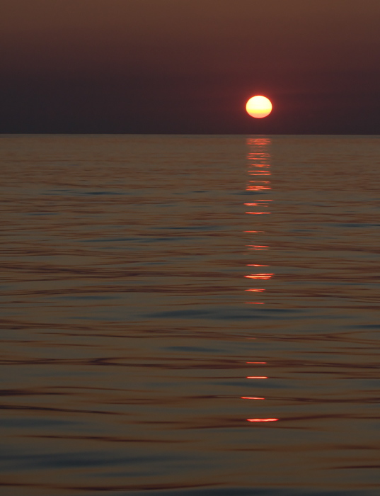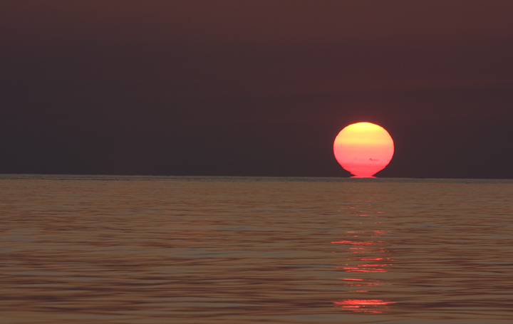 Below: The sun rising over the Atlantic as the Thelma Dale V gets underway from Lewes, Delaware (8/16/2009).