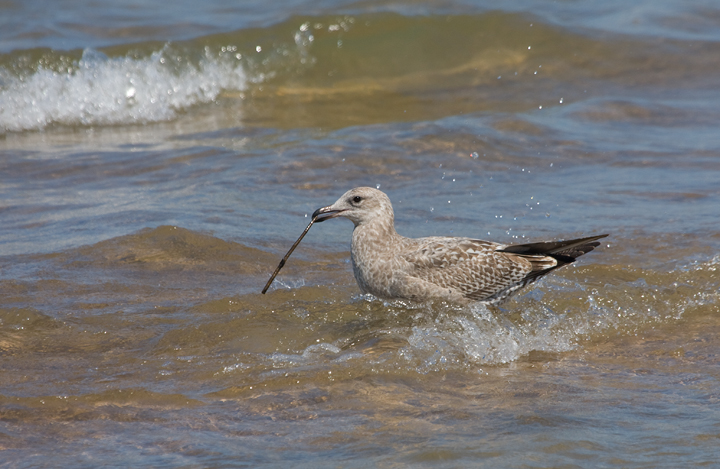 Below: A juvenile Herring Gull plays in the surf of Lake Michigan - Marquette Park, Indiana (9/2/2009).